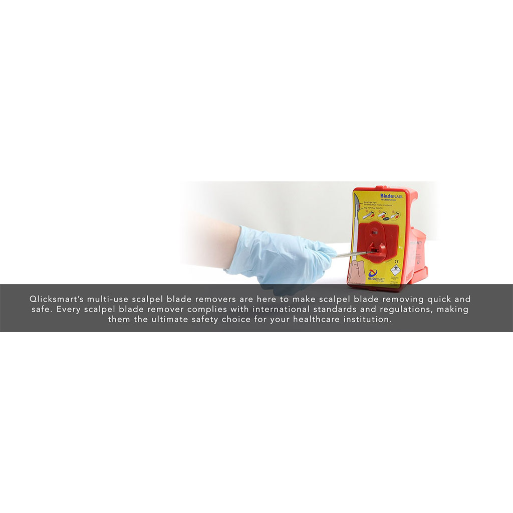 Remove, contain, and dispose of scalpel blades in one click with the BladeFLASK. Secured using a reusable mounting bracket, this safety device can help you quickly and safely remove up to 100 blades at the point of use.